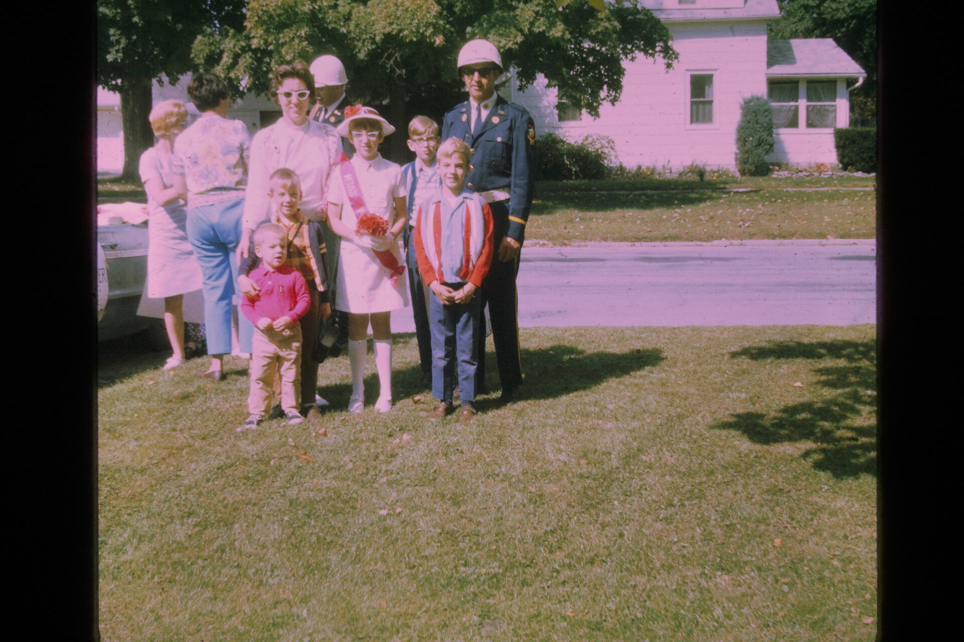My Dad and uncle John Schlotz (far left in 1971_11.130) marched in the parade. Next to John was a man I remember from the fire station. He and John were volunteer fireman.